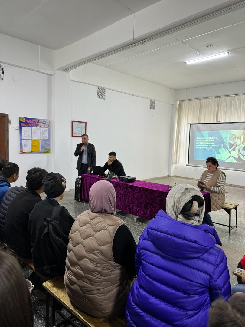 Кызматтын Чүй облустук бөлүмүнүн кызматкерлери тарабынан 15-март дүйнөлүк керектөөчүлөрдүн укуктарын коргоо күнүнө карата 1 айлык иш планынын негизинде Кант шаарында жайгашкан №25 пофессионалдык лицейде иш чара жүргүзүлдү